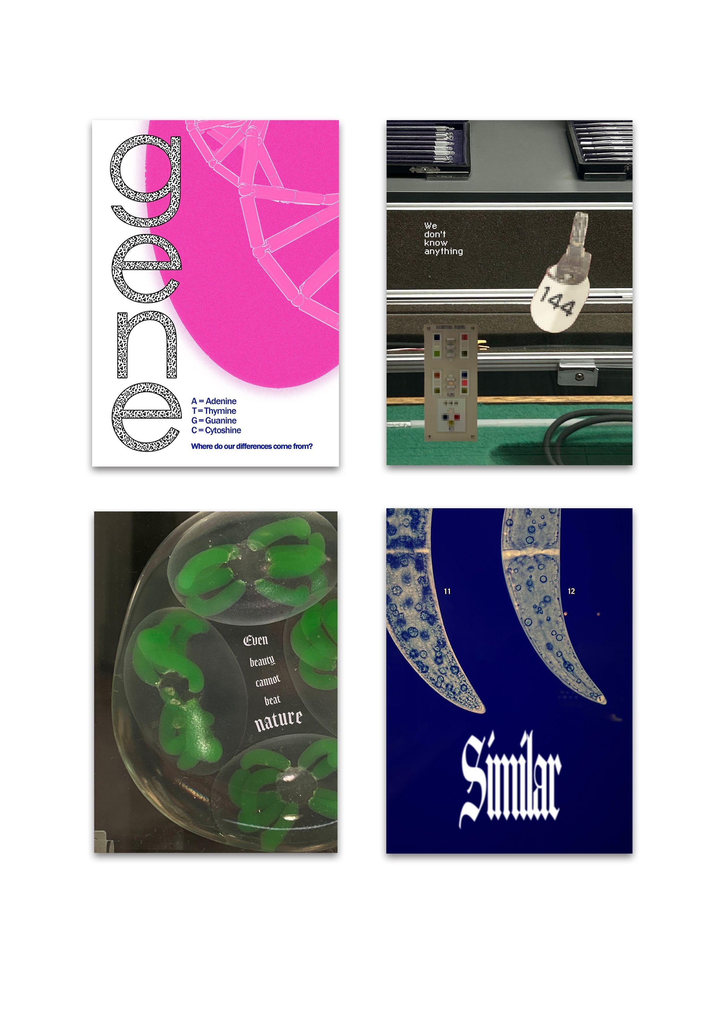 ポストカードサイズのミニポスター(4枚セット) 微生物やDNAなど、科学館で撮った写真をコラージュして作成したミニポスター。 もちろんポストカードしてもお使いいただけます。